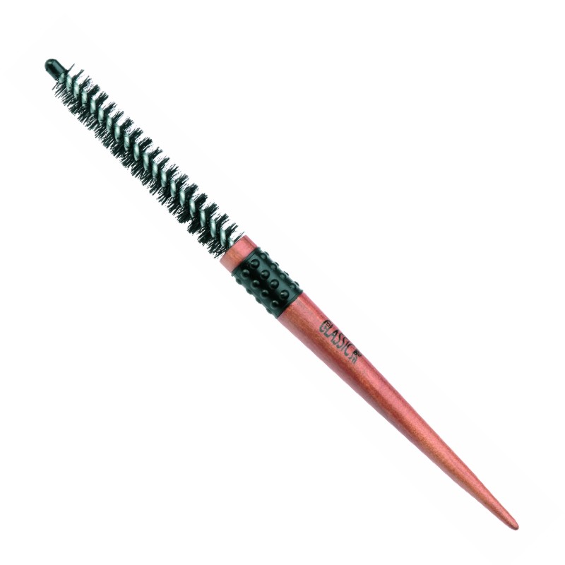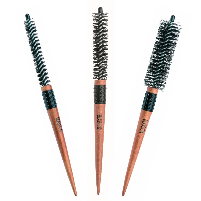 Classic- pyöröharjassa on erittäin kapea runko, joka takaa erittäin tarkan työskentelytuloksen. Nylonharjaksinen pulloharjamainen harja käy kaikille hiustyypeille. Puisen varren kumipinnoite tarjoaa erinomaisen pidon työskentelyn aikana ja kapenevaa vartta voi käyttää hiusten osituksiin.